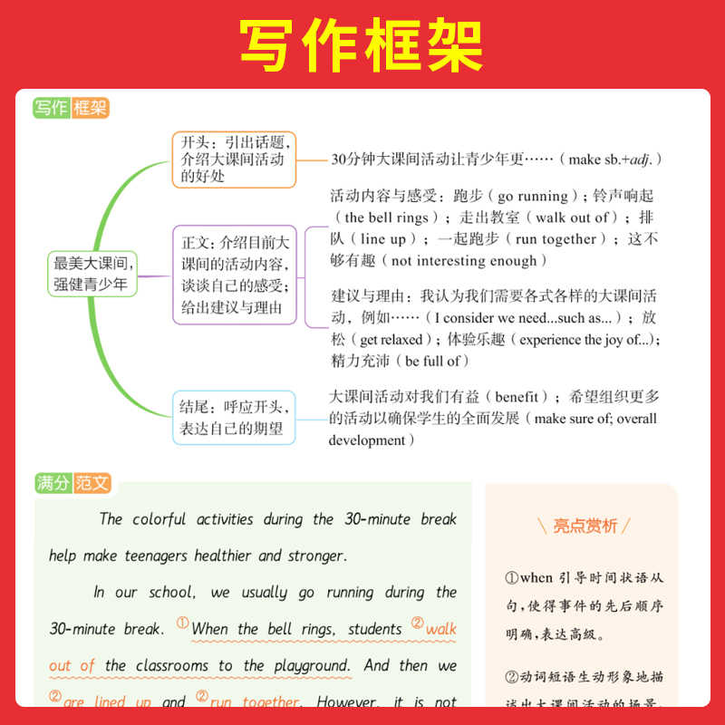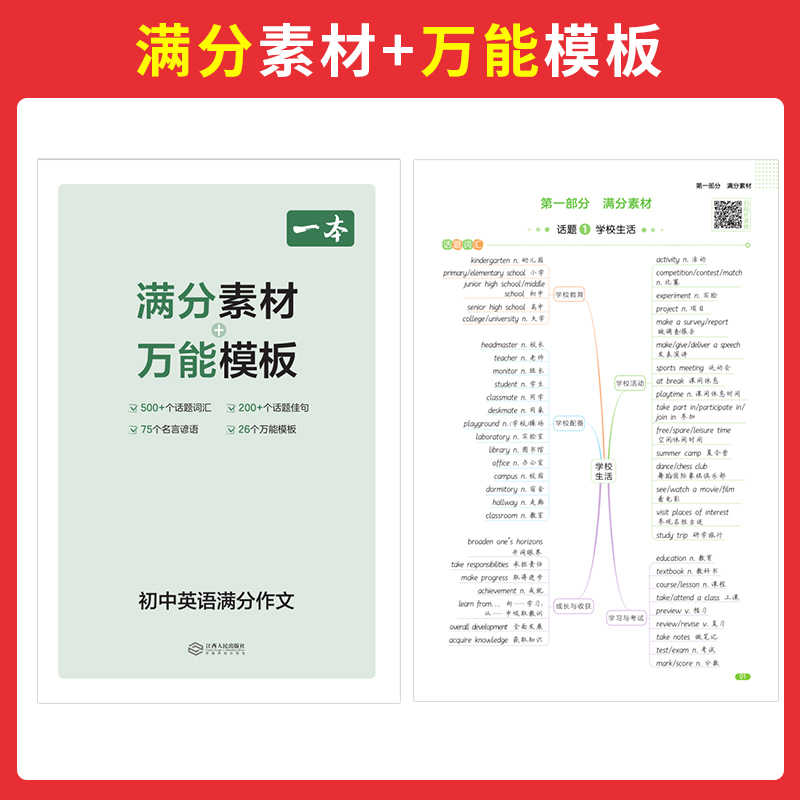 同步25新版 七年级八年级九年级上下册 789初一初二初三中考英语意林外研一本满高分作文万能模板素材示范大全 人教版 初中英语作文