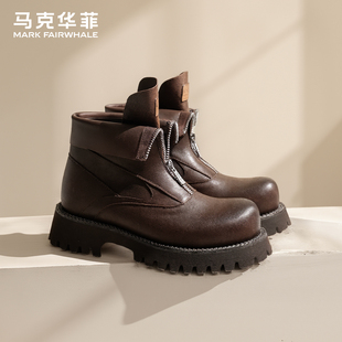 美拉德棕色靴子厚底黑色短靴 秋复古女鞋 英伦风马丁靴女款 2025新款