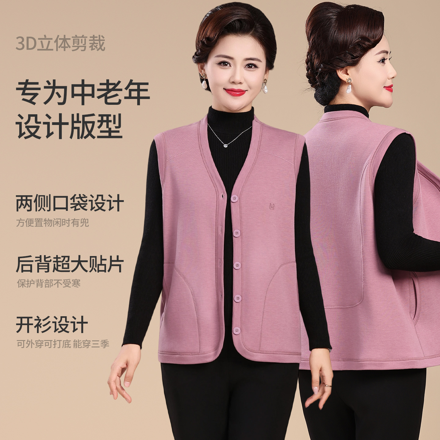 恒源祥秋冬季 马甲 加绒加厚背心女中老年妈妈羊绒蚕丝贴片发热开衫