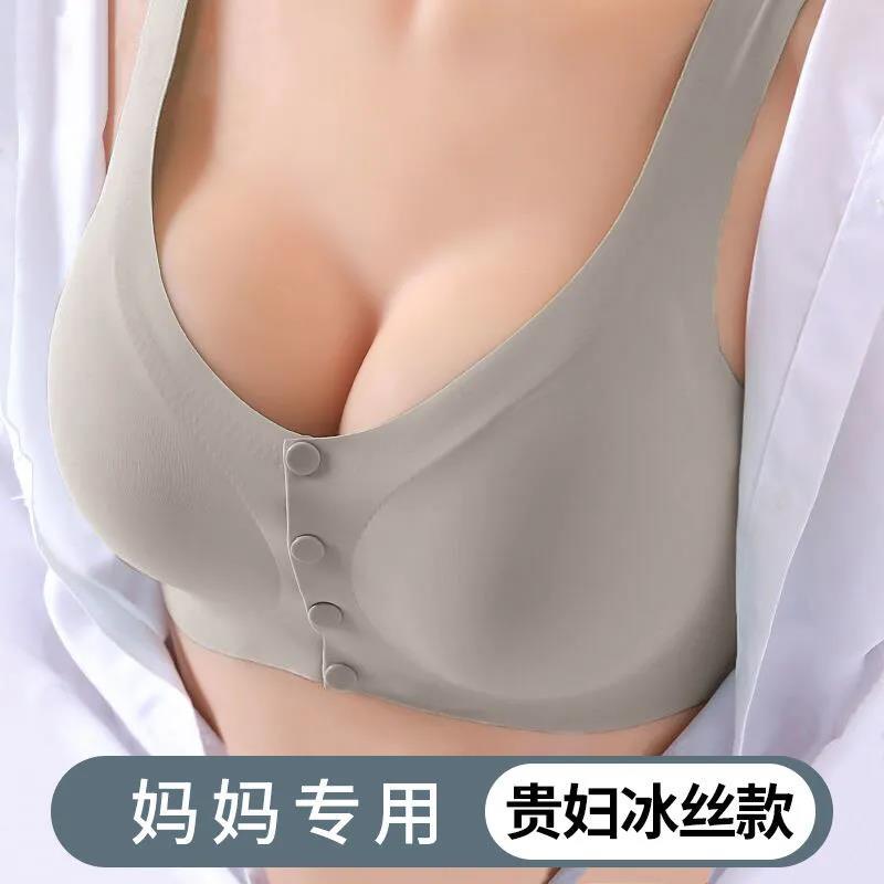 薄款 大码 背心妇女文胸罩冰丝夏季 妈妈内衣前扣中老年人无钢圈大码