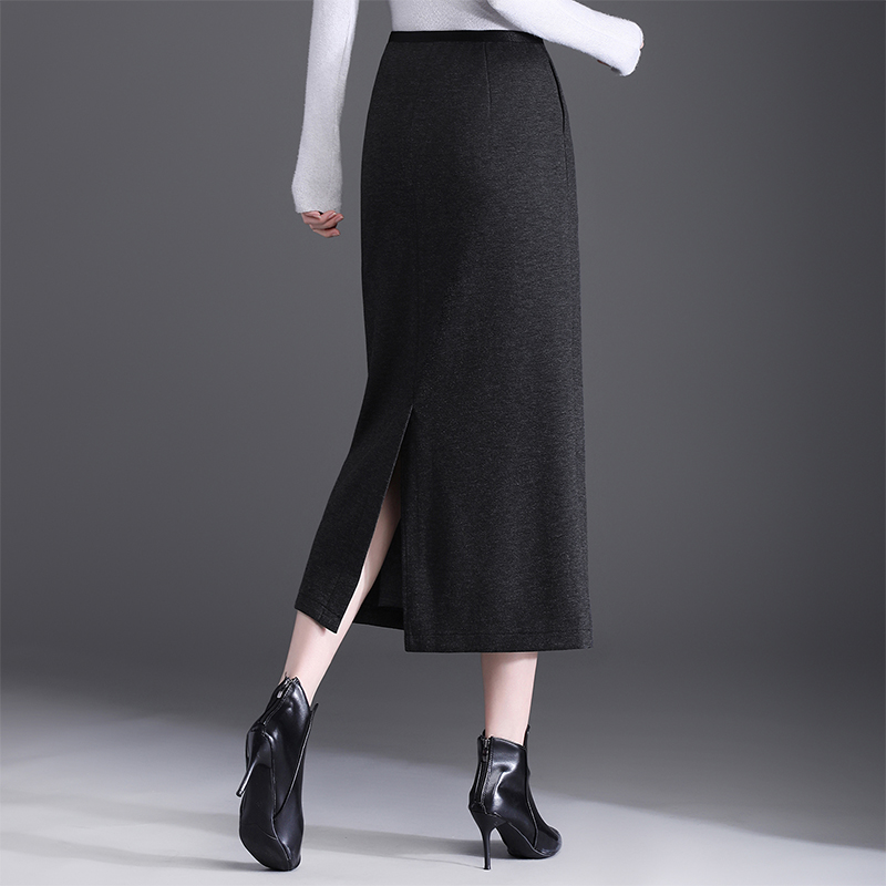 毛呢直筒裙半身裙女秋冬2025新款 开叉一步裙 高腰显瘦包臀裙中长款