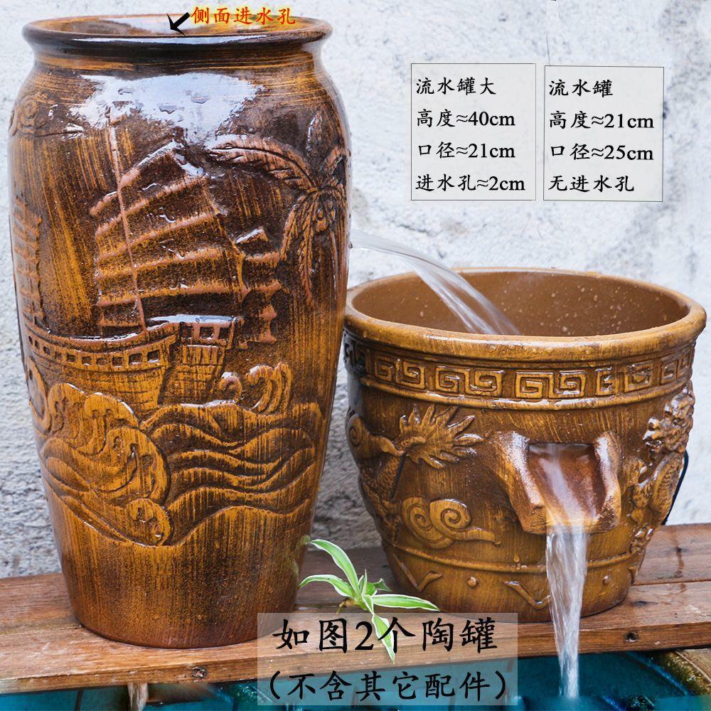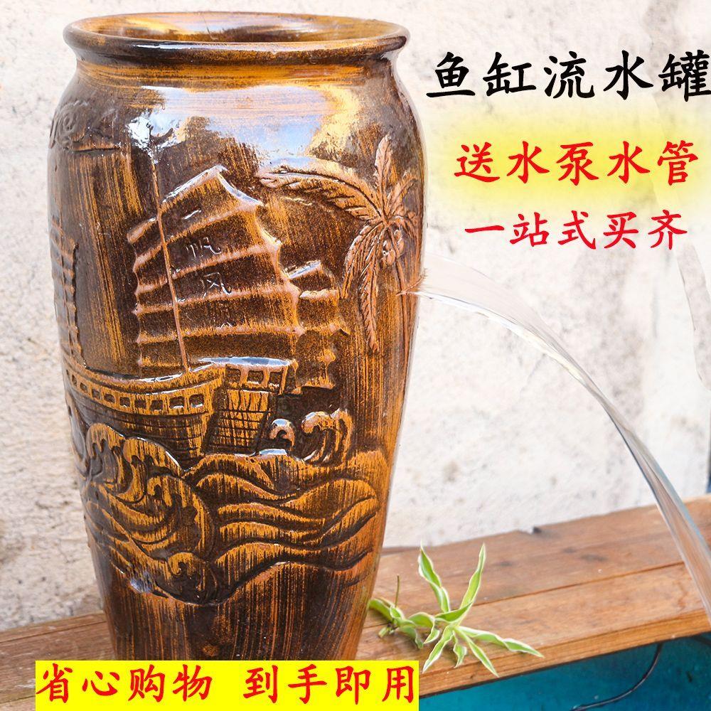 户外流水罐大号瀑布开口流水罐鱼缸摆件清仓自动古法鱼缸过滤器