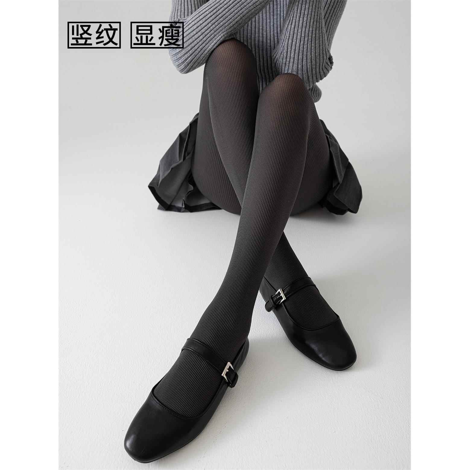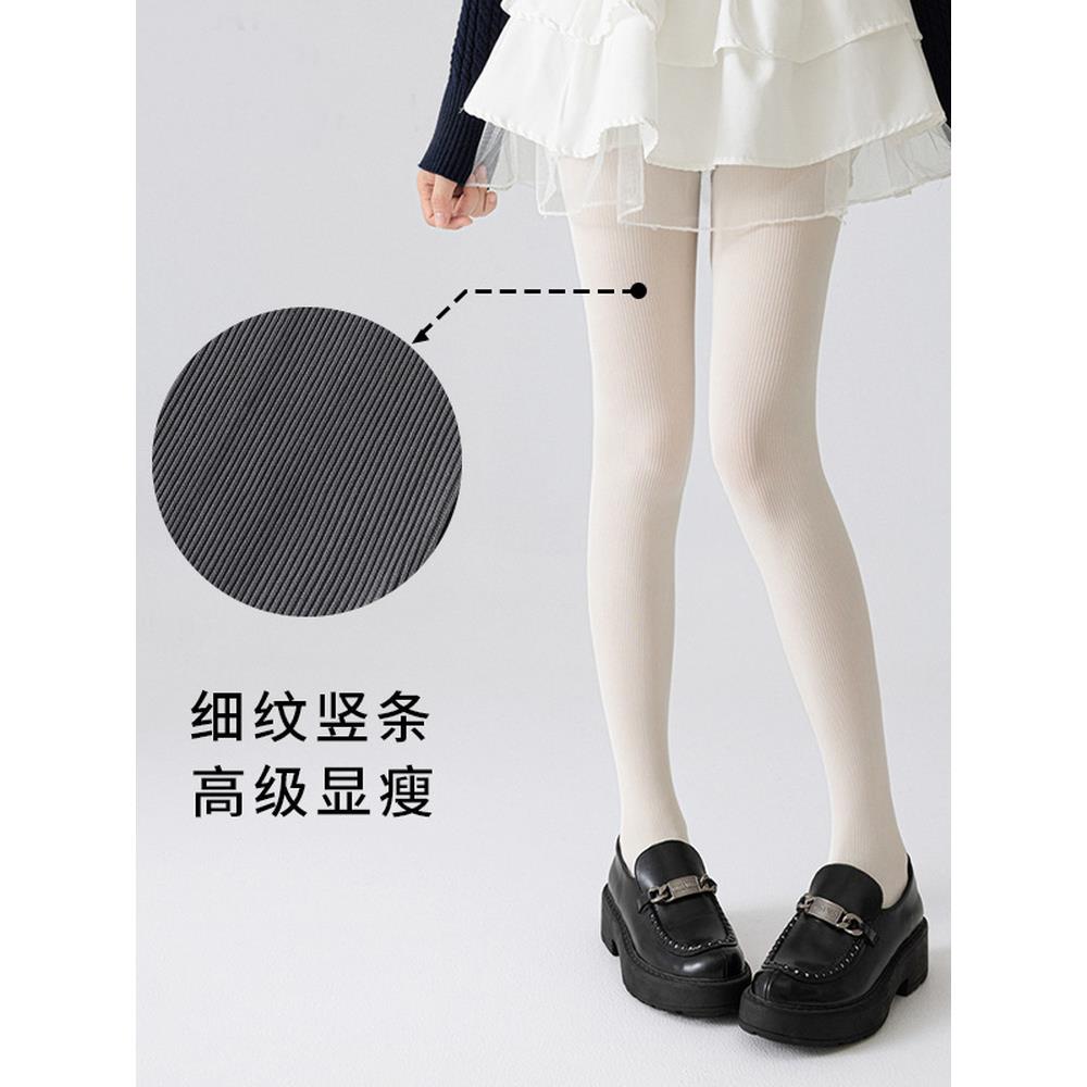 白色条纹连裤 袜女春秋外穿日系麻花丝袜微压显瘦高级感烟灰打底袜
