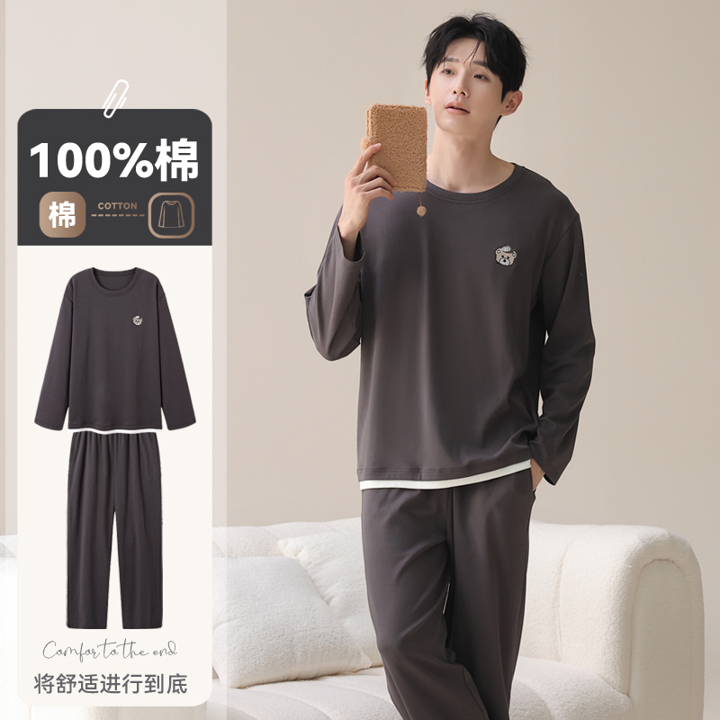 春秋季 纯棉青少年家居服男款 睡衣男士 长袖 秋冬款 帕兰朵2025新款
