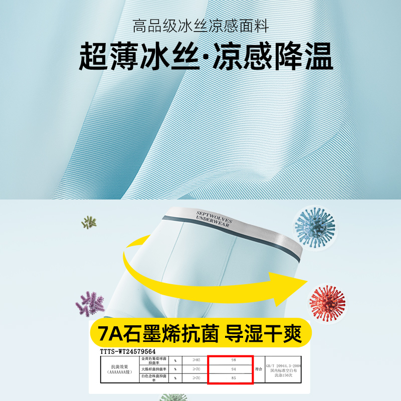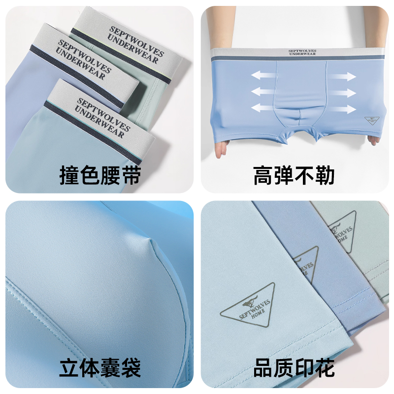 冰丝透气四角短裤 3件 莫代尔大码 平角内裤 男生 蕉内银皮500E男士