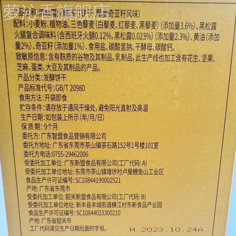 Sam代购 黑松露火腿苏打饼干下午茶早餐藜麦奇亚籽饼乾官方旗舰店