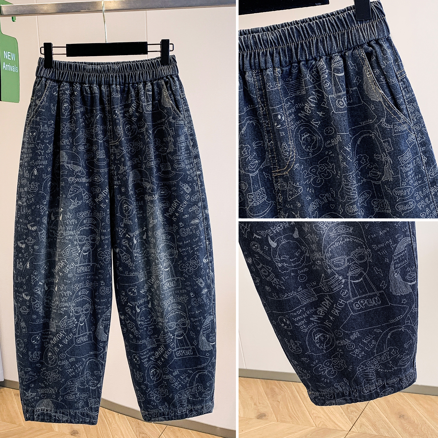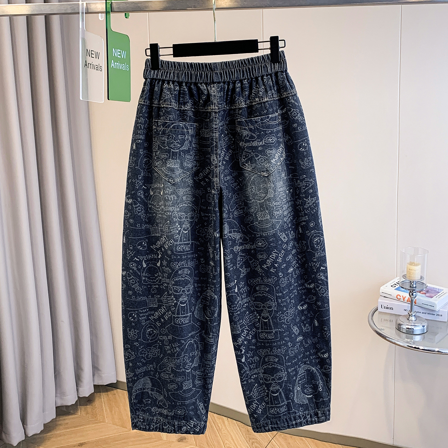时尚 潮流洋气宽松显瘦阔腿裤 刺绣涂鸦哈伦裤 新款 女胖MM秋季 加大码