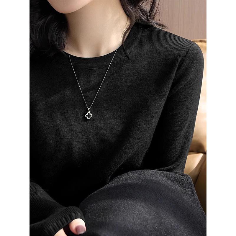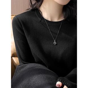 1012h 感气质百搭针织打底衫 黑色内搭圆领毛衣女款 秋冬2025新款