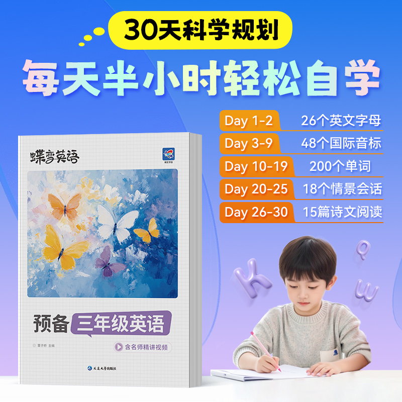 2025暑假 蝶变学园小学预备三年级英语小学生预习必背英语学习资料三年级英语视频课假期预习提前学习必备资料 预备三年级