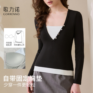 修身 打底衫 显瘦上衣服 T恤女春秋内搭短款 设计感小众蕾丝方领长袖