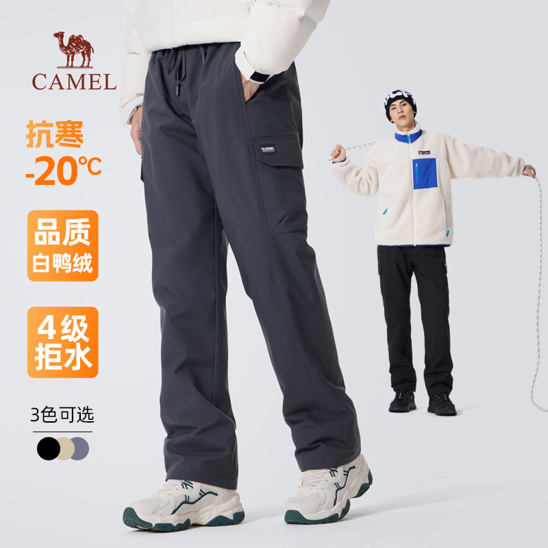 新品 白鸭绒防泼水极寒情侣滑雪裤 工装 男直筒裤 羽绒裤 骆驼2025冬季