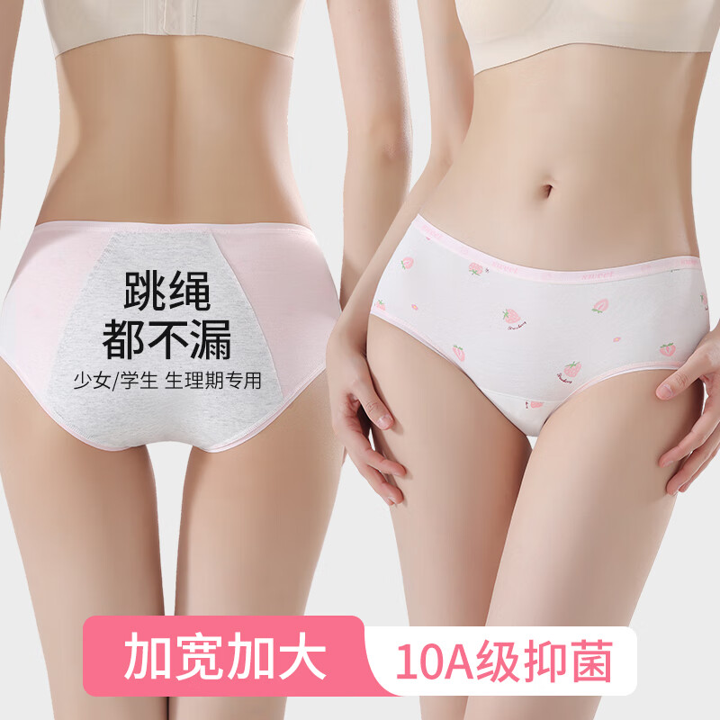 猫人少女生理裤 头 月经期女大童安全防漏纯棉初中高中学生姨妈内裤