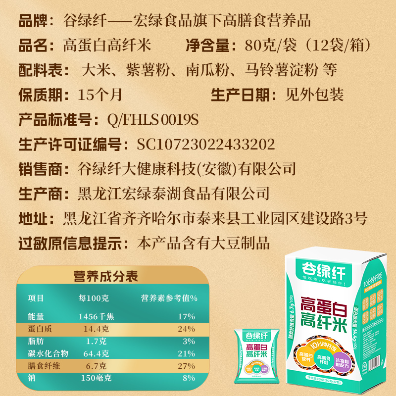 谷绿纤高蛋白粗粮高纤米免洗免煮低GI高饱腹冲泡速食糙米
