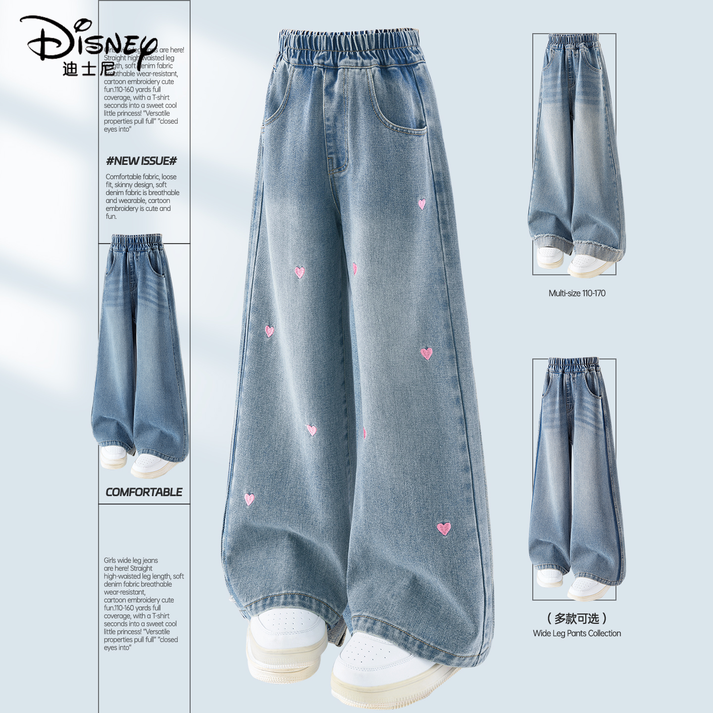 子春秋款 儿童牛仔裤 2025新款 秋装 加绒加厚女孩阔腿裤 迪士尼女童裤