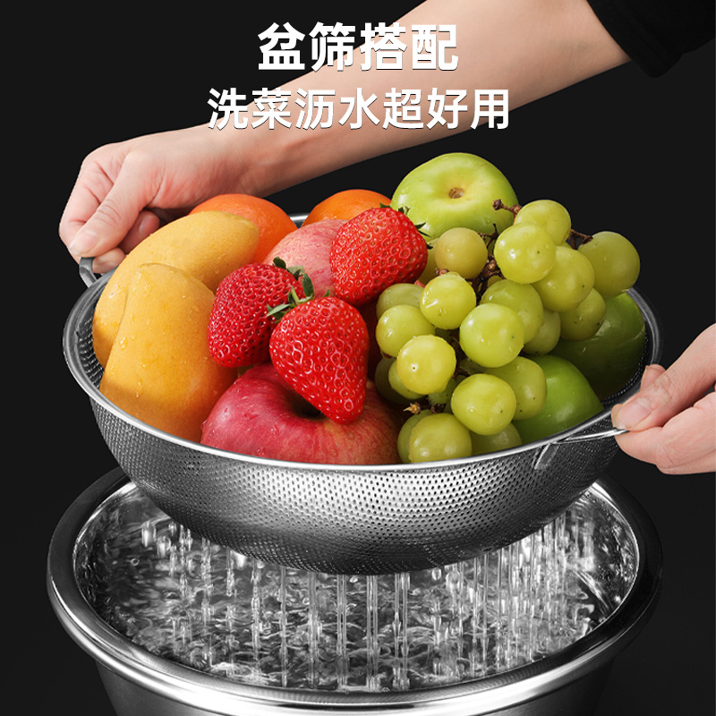 304不锈钢沥水篮洗菜盆洗米筛厨房神器水果篮淘米盆沥水漏盆和面