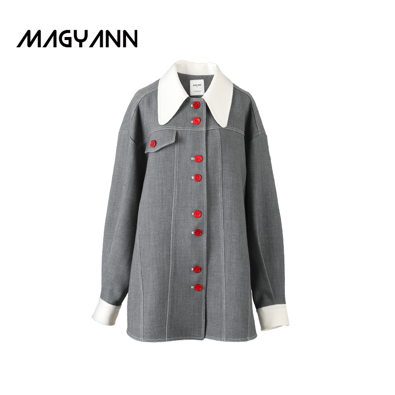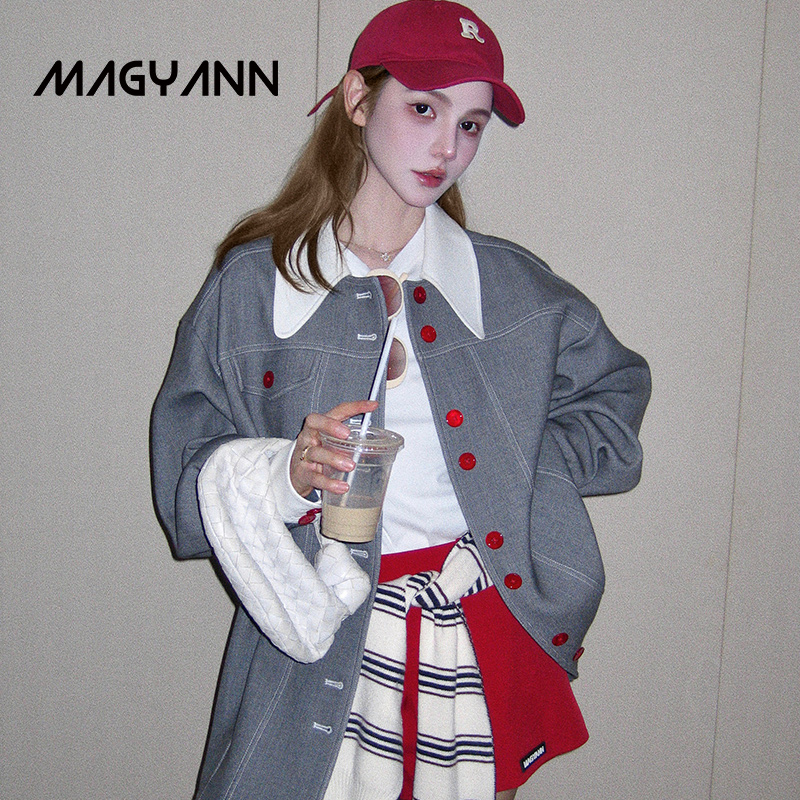 外套女 Magyann设计师原创休闲2025秋格雷系撞色压线领袖 寻谧