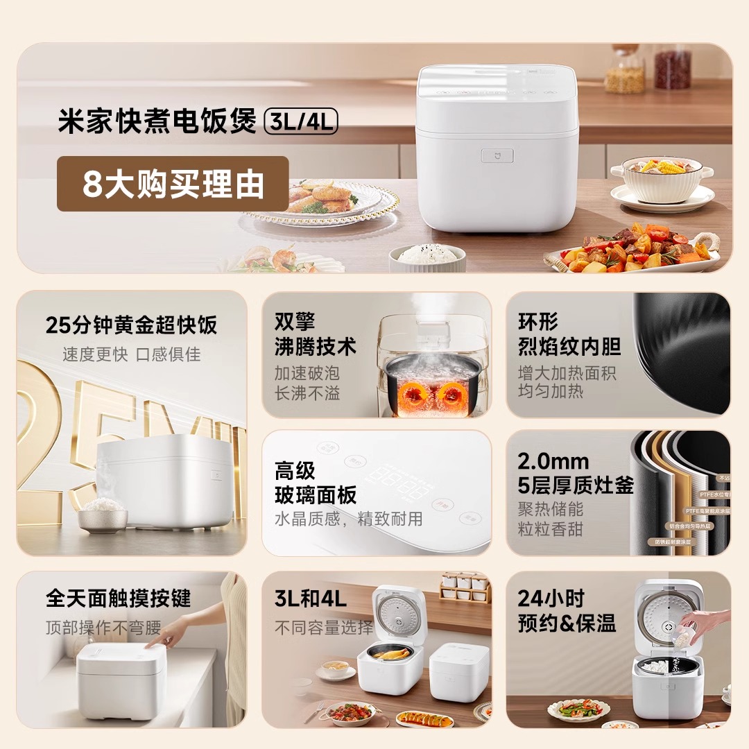 小米米家电饭煲快煮3L4L5L家用多功能电饭锅
