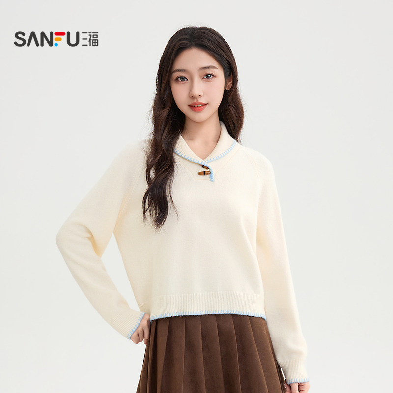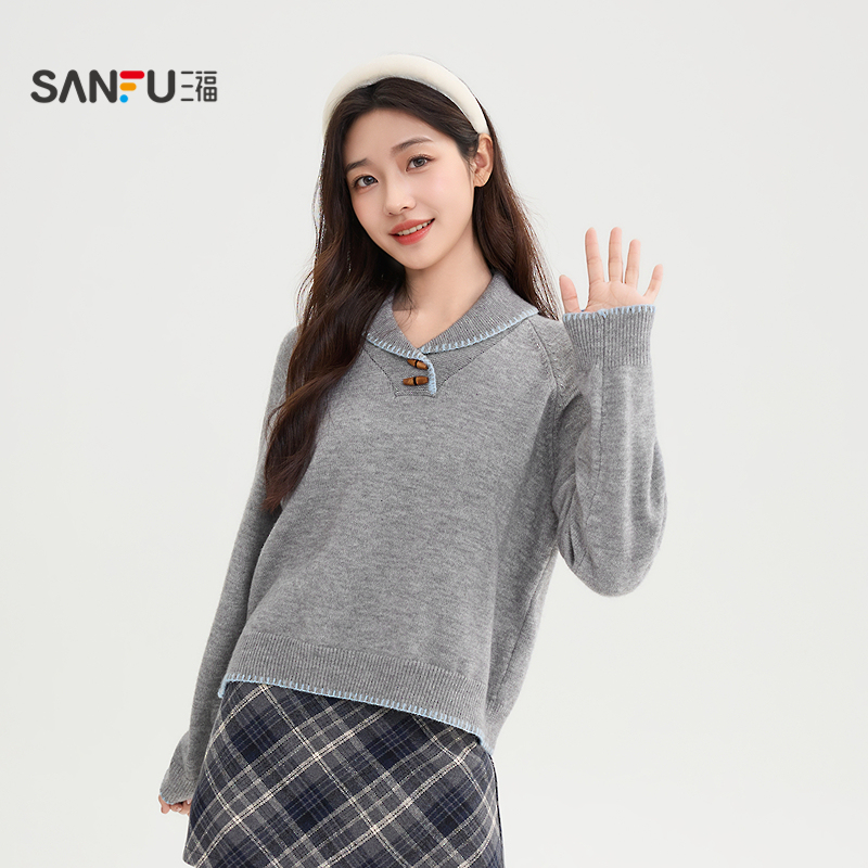 509727 可爱毛绒小狗宽松上衣女装 三福毛衣慵懒高级感2025新款 冬季
