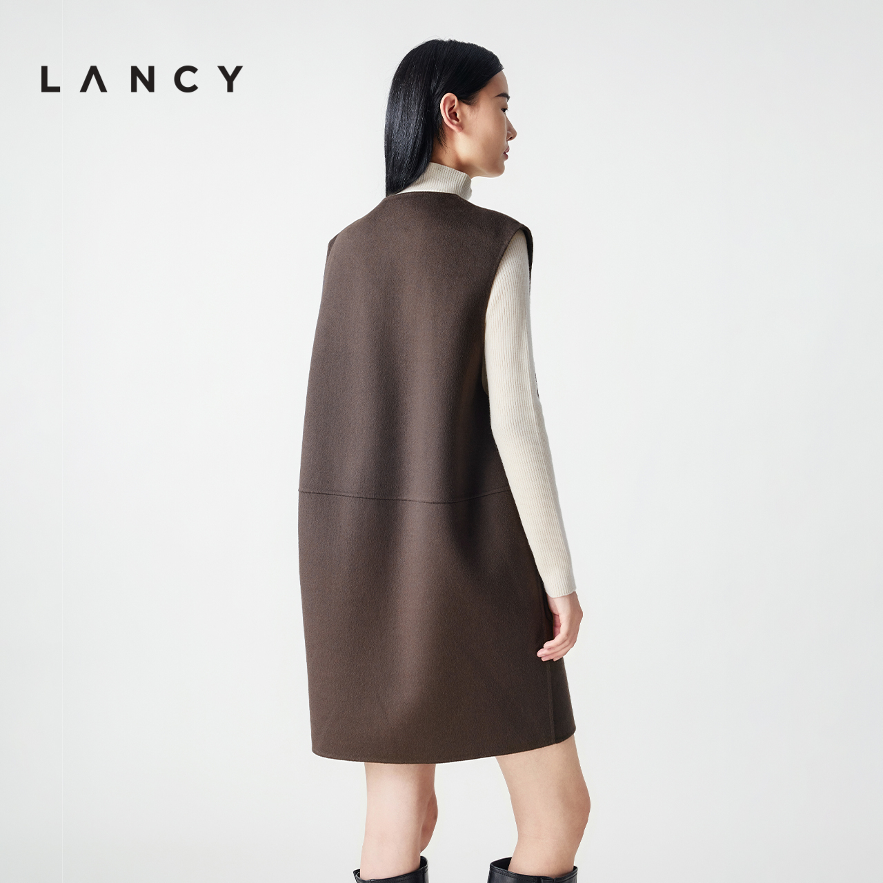 朗姿2025冬新款 LANCY 老钱风双面呢V领背心裙连衣裙 羊毛羊绒