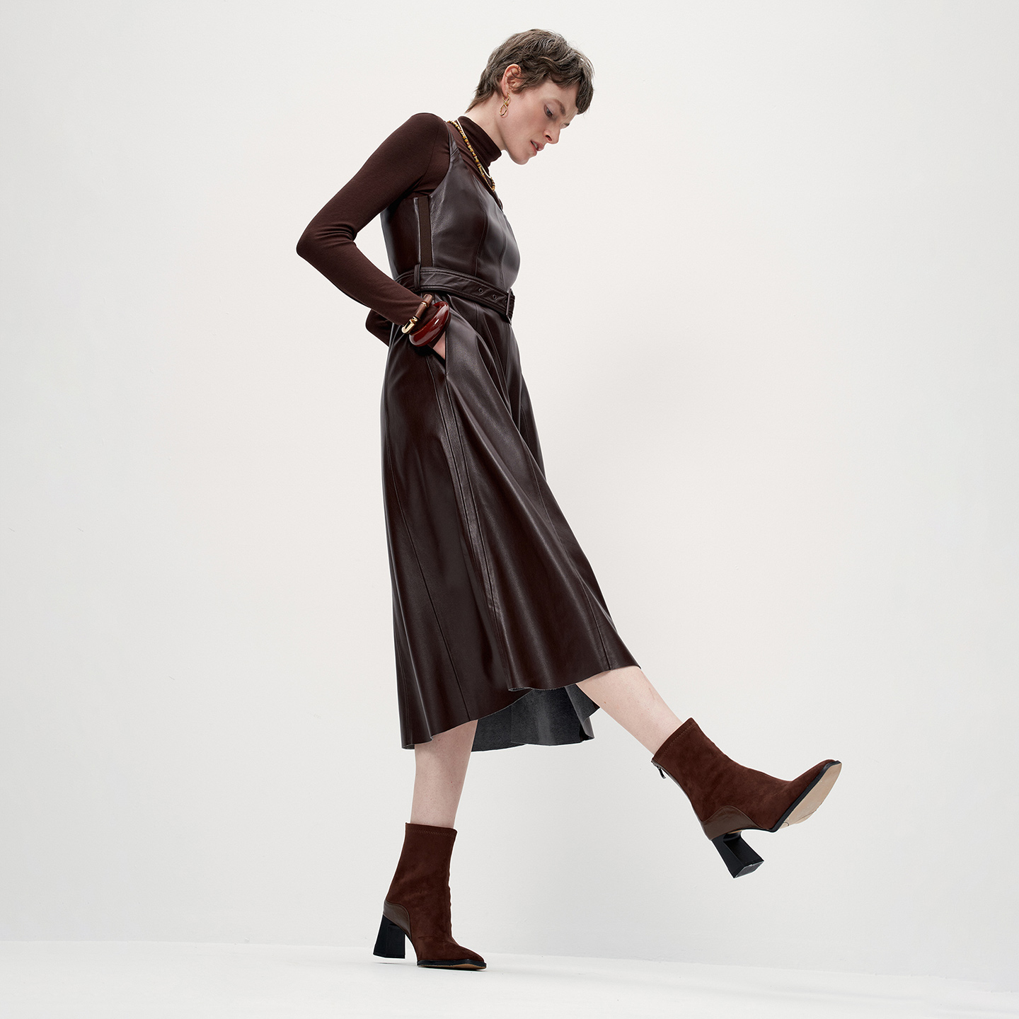 复古气质通勤A字大摆收腰显瘦PU皮背心连衣裙 BLUE轻奢优雅女装