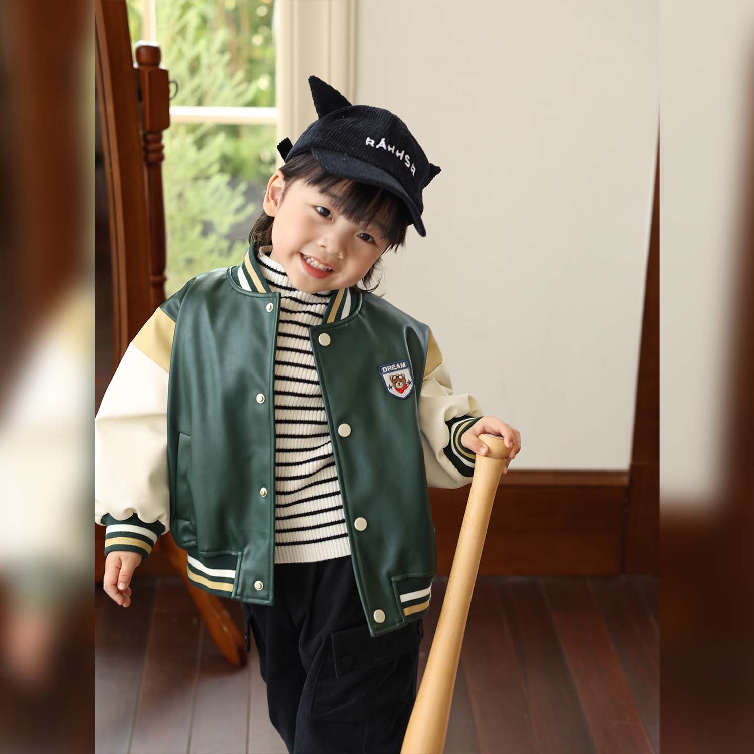 小O爸婴童 儿童撞色复古保暖外套 男宝宝夹棉皮衣棒球服秋冬款