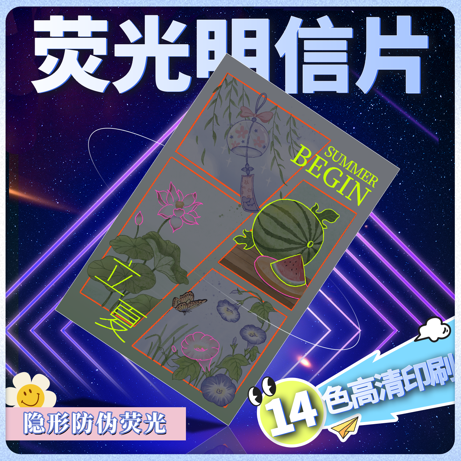 沉墨荧光明信片来图定制烫金高级感双面自印二次元 印刷照片diy特种纸防伪工艺高清动漫明星周边物料打印厚卡