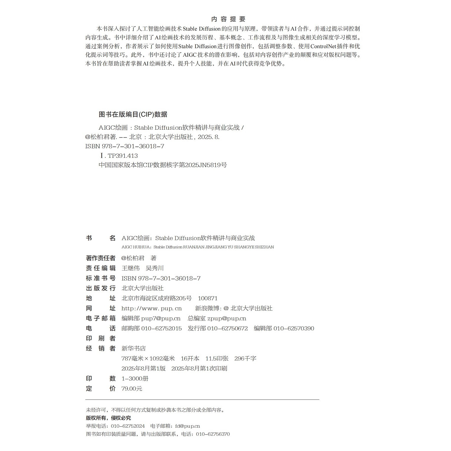 武松柏 Diffusion软件精讲与商业实战 @松柏君 北京大学出版 9787301360187 AIGC绘画 社 Stable