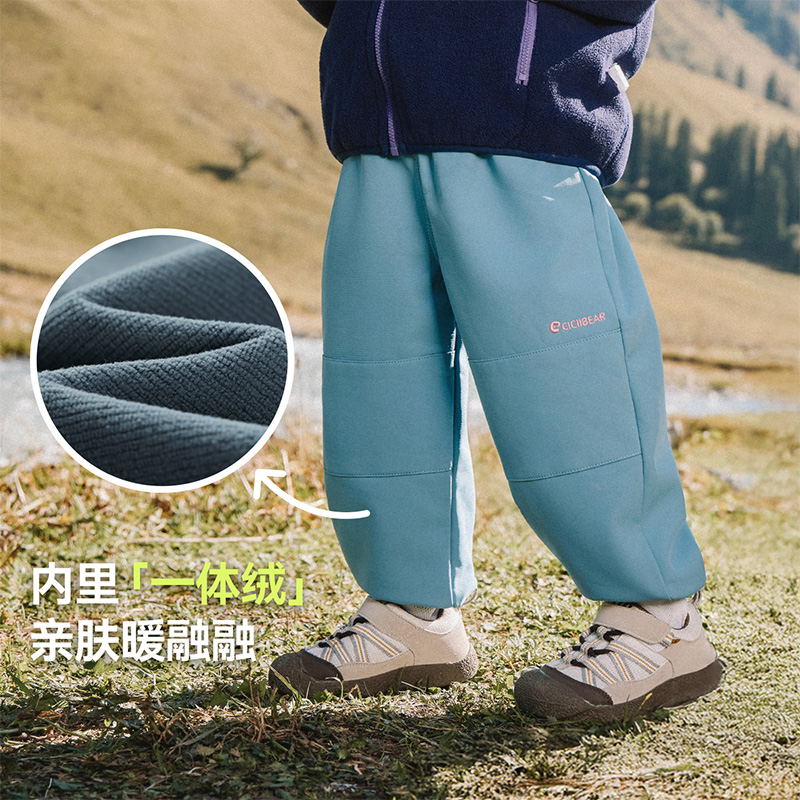 冲锋裤 宝宝软壳裤 儿童女童 子冬款 齐齐熊男童杜邦三防一体绒加绒裤