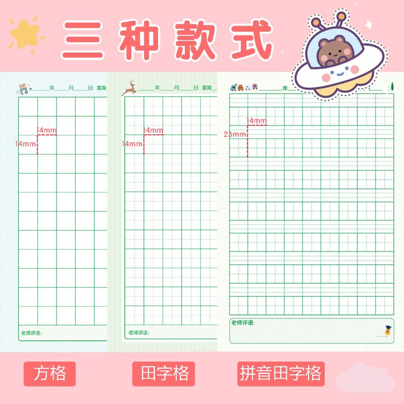 小学生课业本作业本田字格本拼音本全国标准统一田字格簿数学生字练习本教学用本