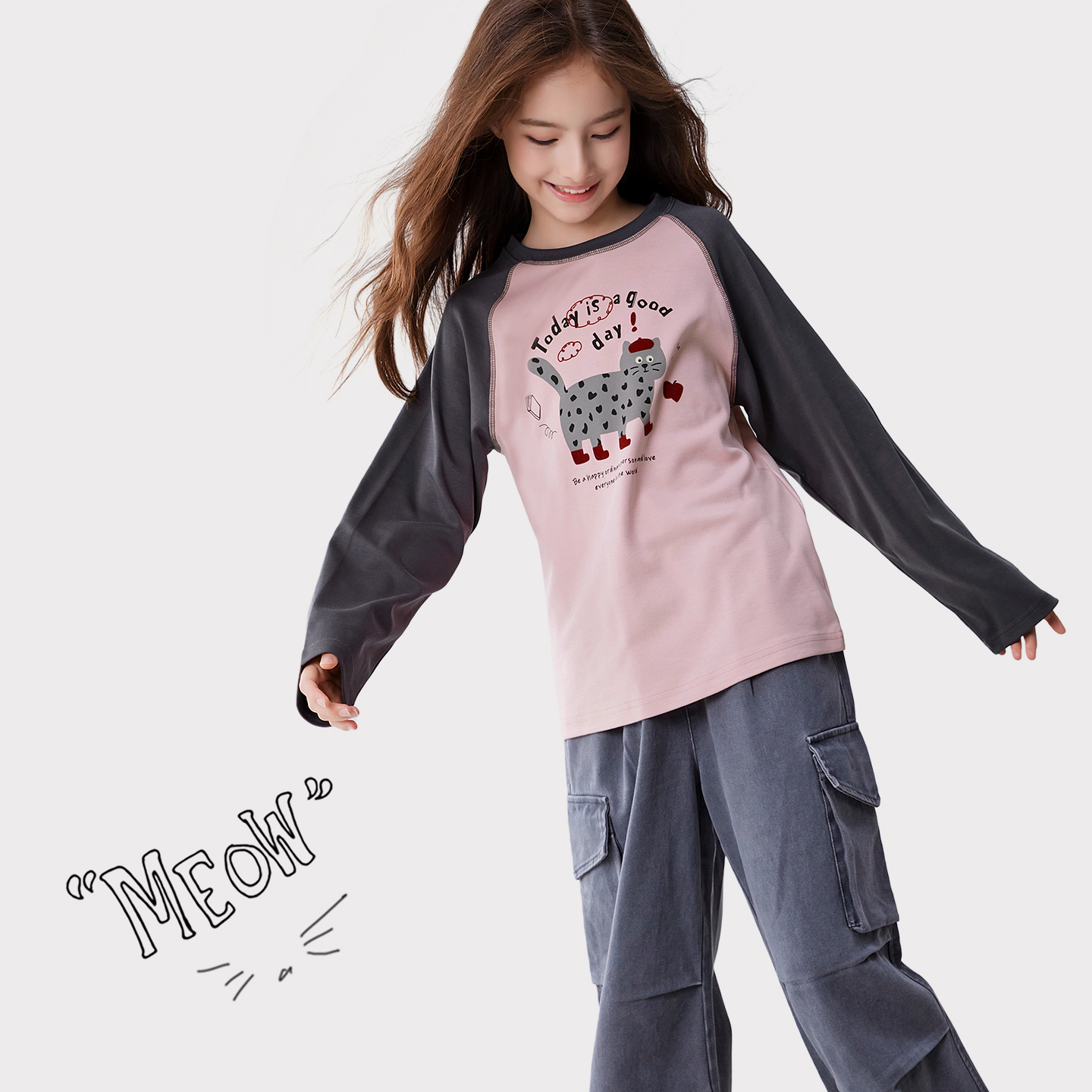 青少年洋气上衣童装 女童打底衫 T恤中大童宽松长袖 新款 儿童春秋装