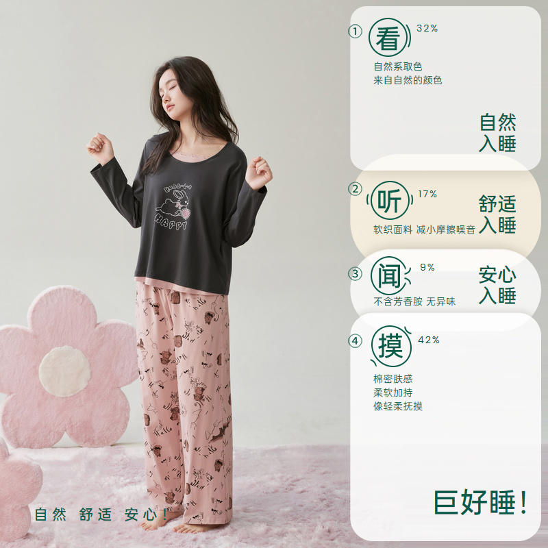 宽松大码 安之伴 2025新款 纯棉睡衣女春秋季 可外穿家居服 巨柔软