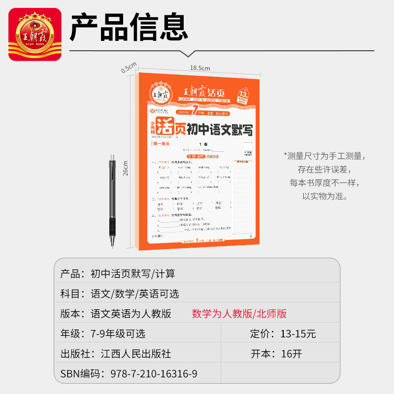 2025新王朝霞活页默写计算初中七八九年级错题本语数英同步练习册一课一练计算能手数学语文专项积累英语字词句人教北师试卷默写zj