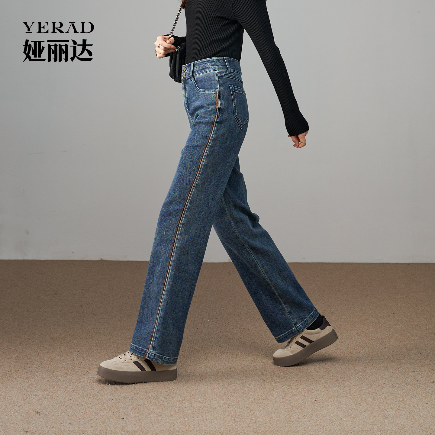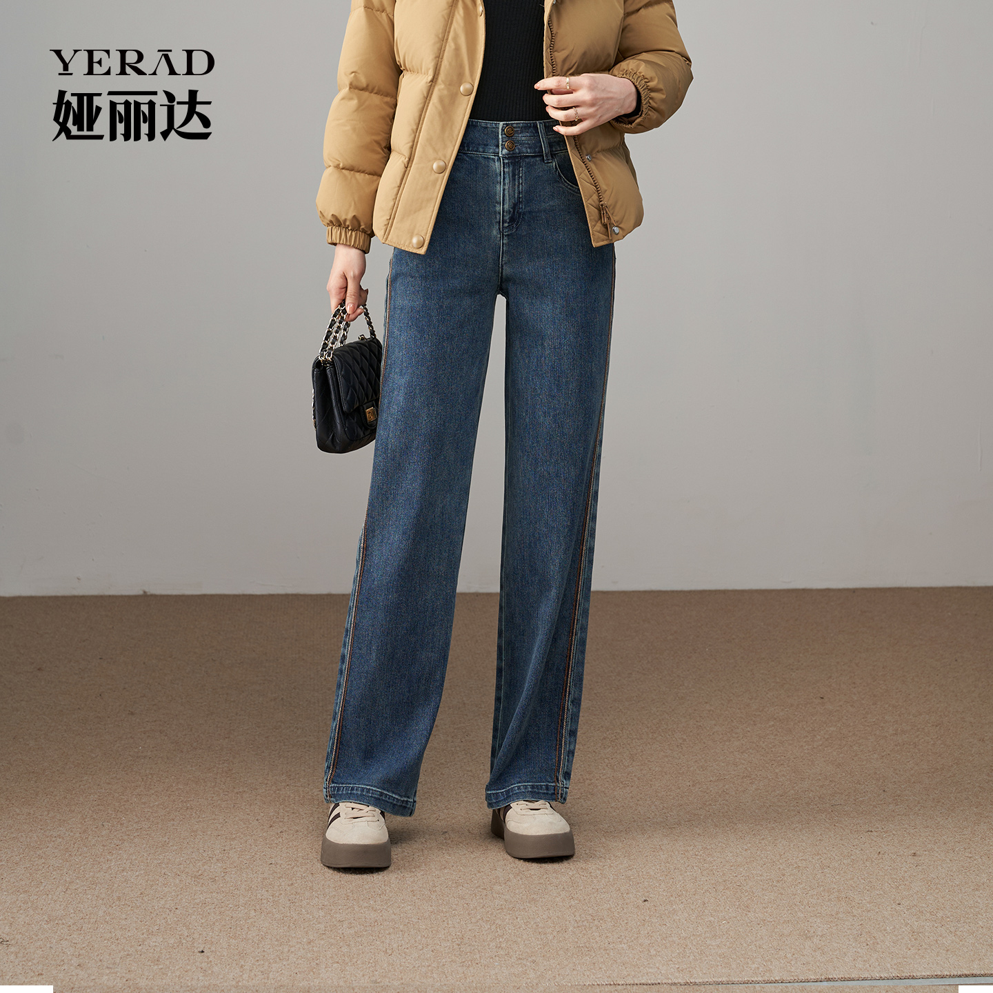 阔腿裤 高腰显瘦垂感直筒镰刀加绒窄版 子 女2025秋冬新款 弯刀牛仔裤