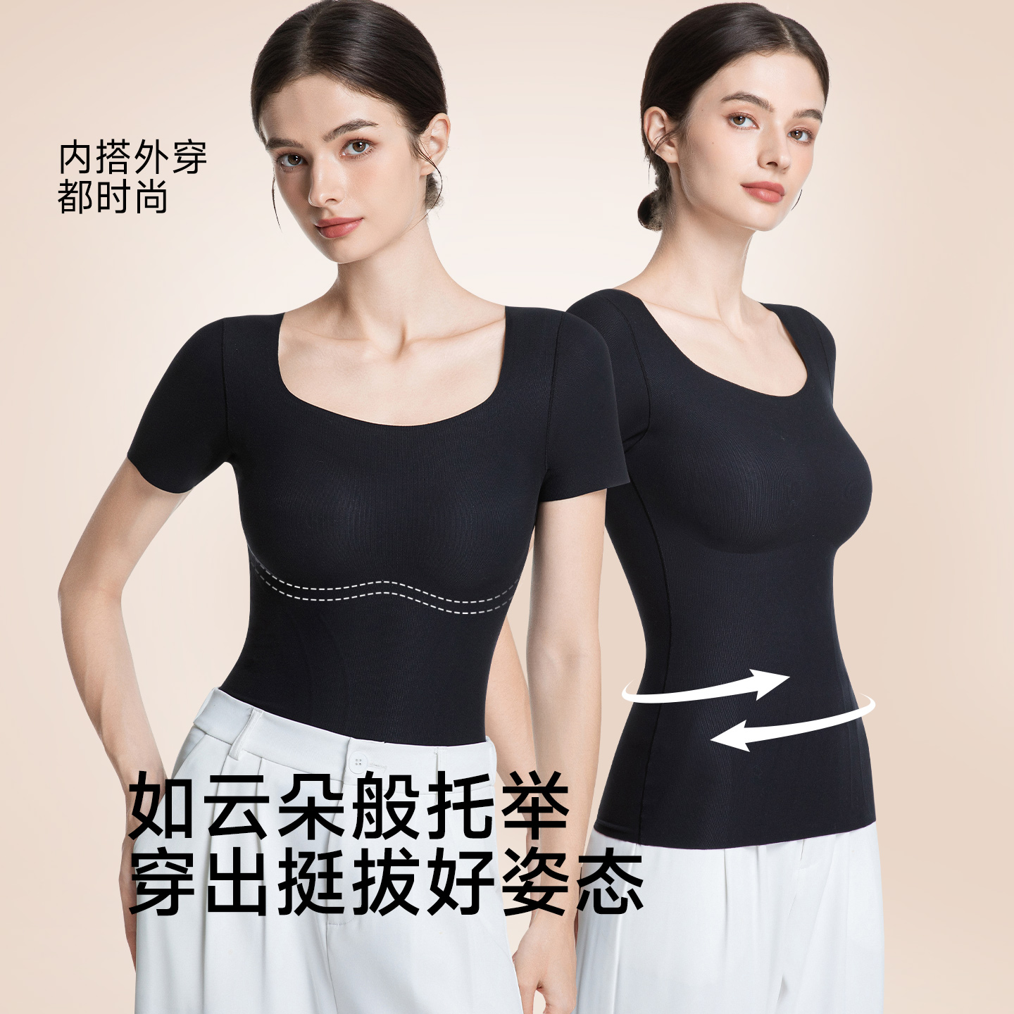 婷美免穿文胸蓄热保暖肌底衣女带胸垫修身 显瘦秋冬无痕裸感打底衫