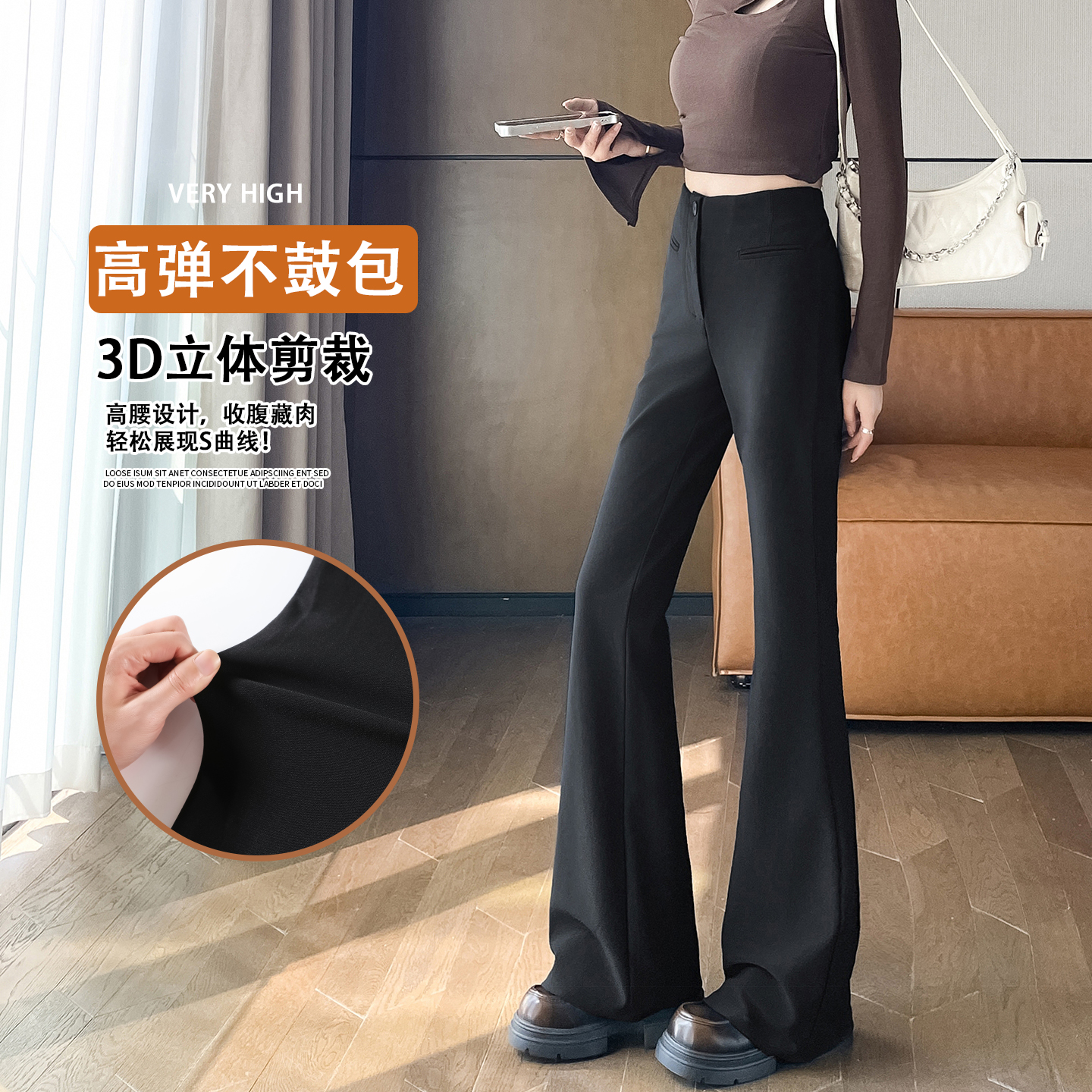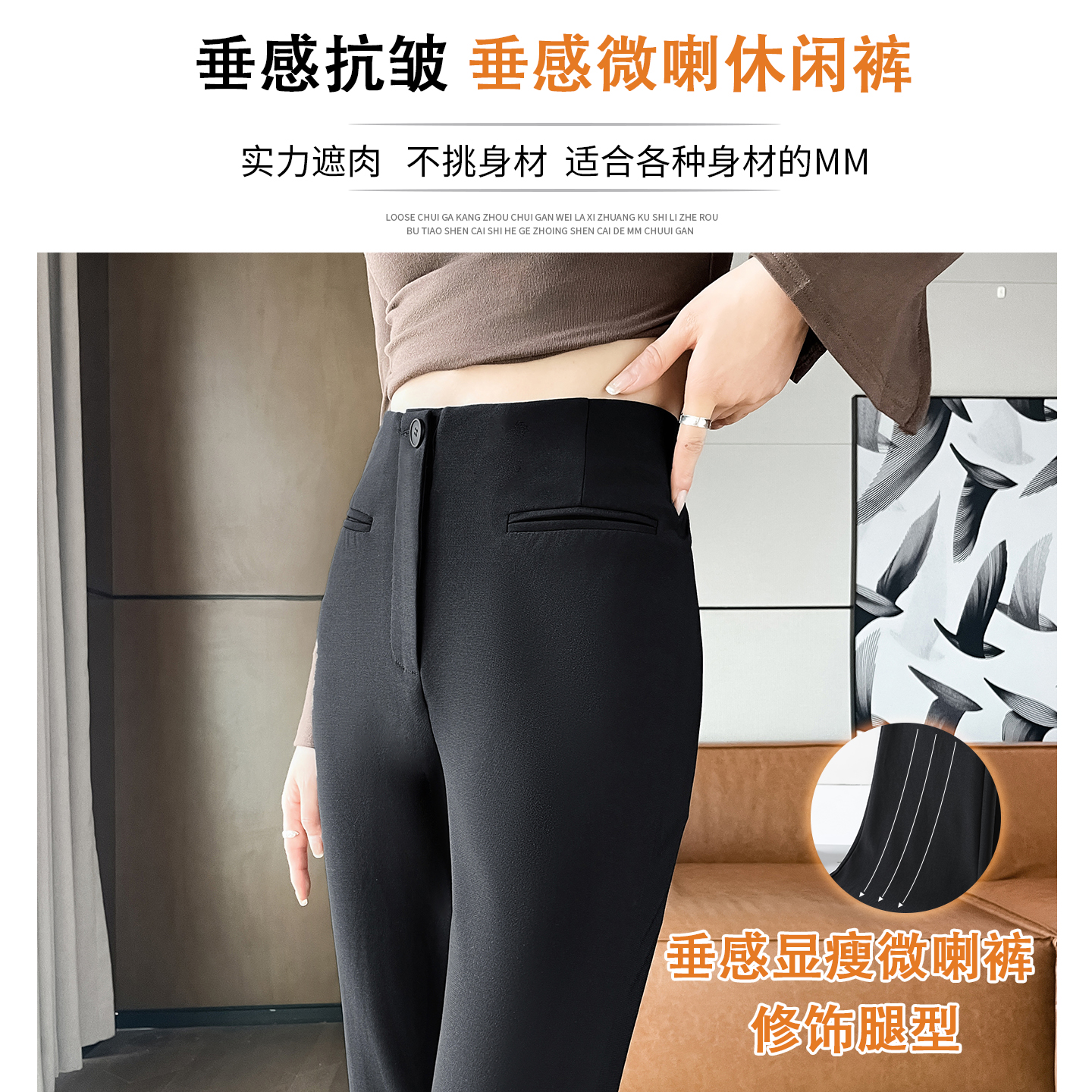 休闲喇叭裤 马蹄裤 冬加绒西装 裤 黑色高腰微喇裤 长裤 女春秋2025新款