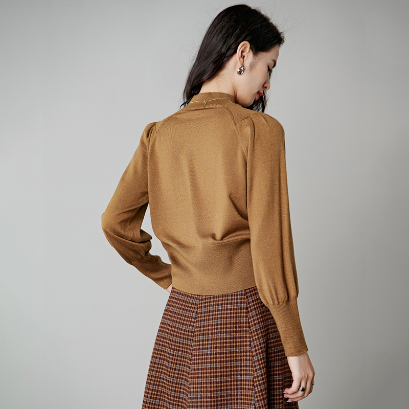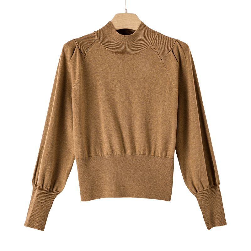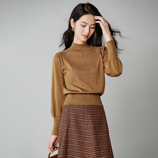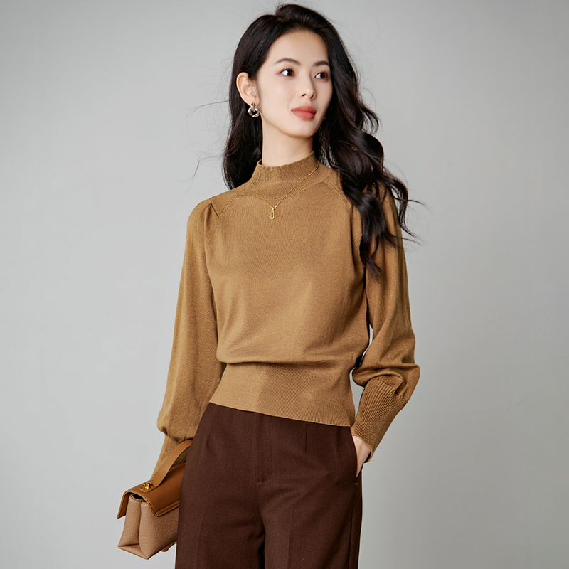 女 简约休闲百搭套头毛衣毛针织衫 晚白2025年秋新款 高弹立领时尚