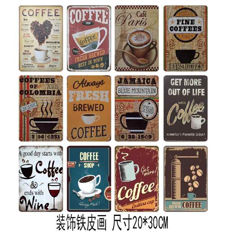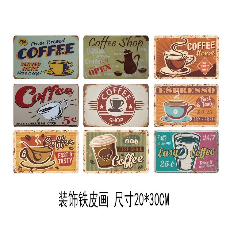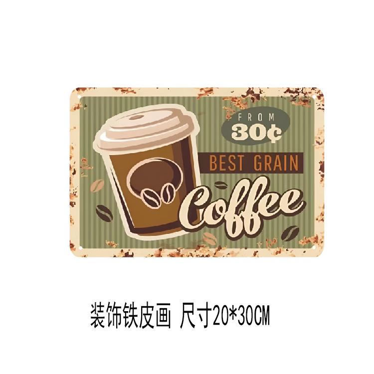饰画COFFEE壁饰创意壁挂 铁皮画咖啡厅休闲吧装 美式 乡村做旧风格