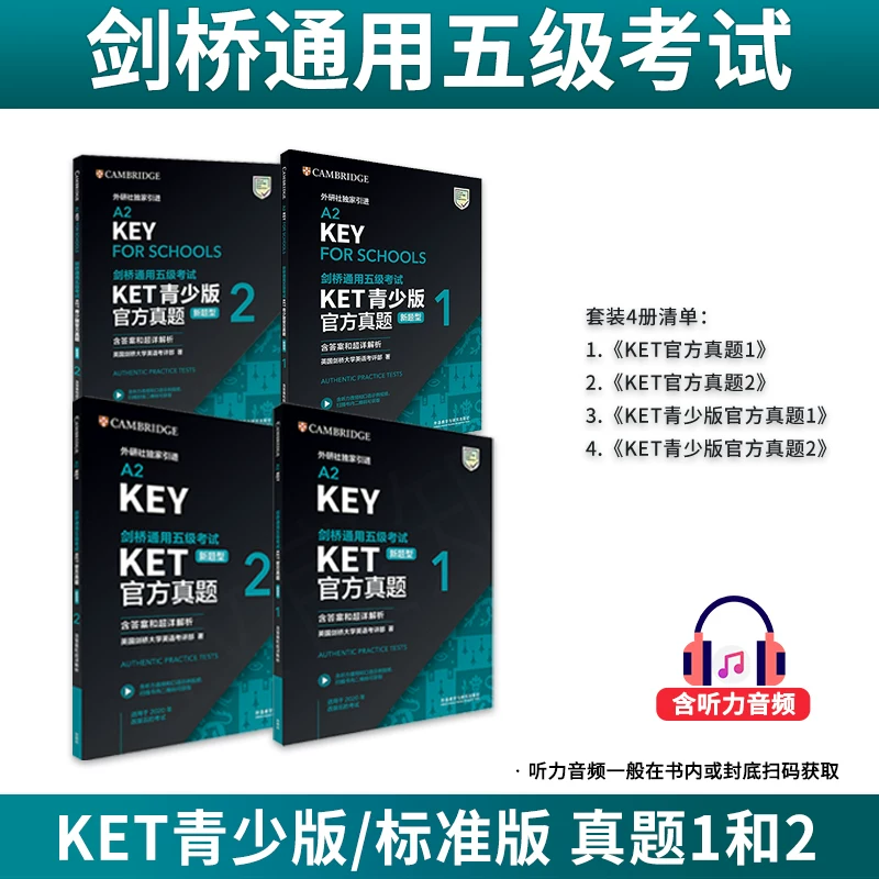 听力新版 答案和超详解解析精讲精练英语全真模拟题真题集KET标准版 剑桥通用五级考试KET官方真题新题型12备考12青少版 2025正版