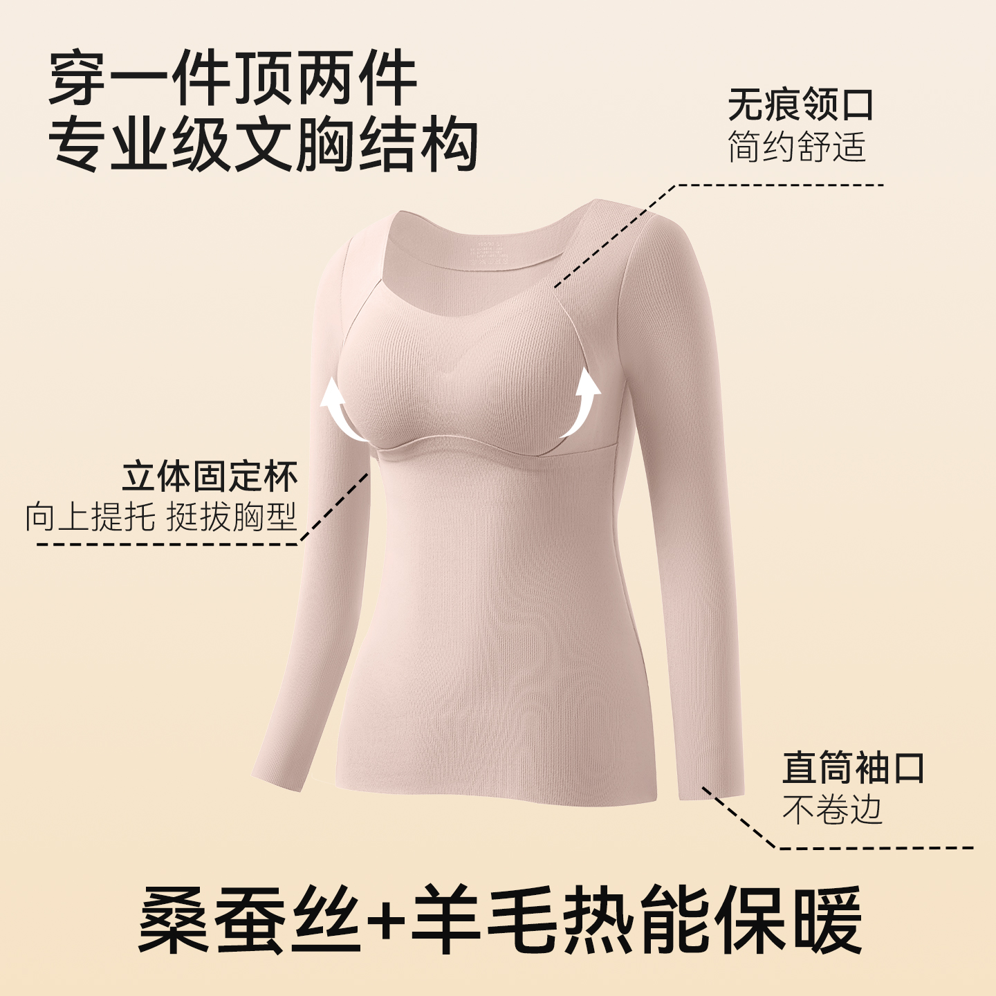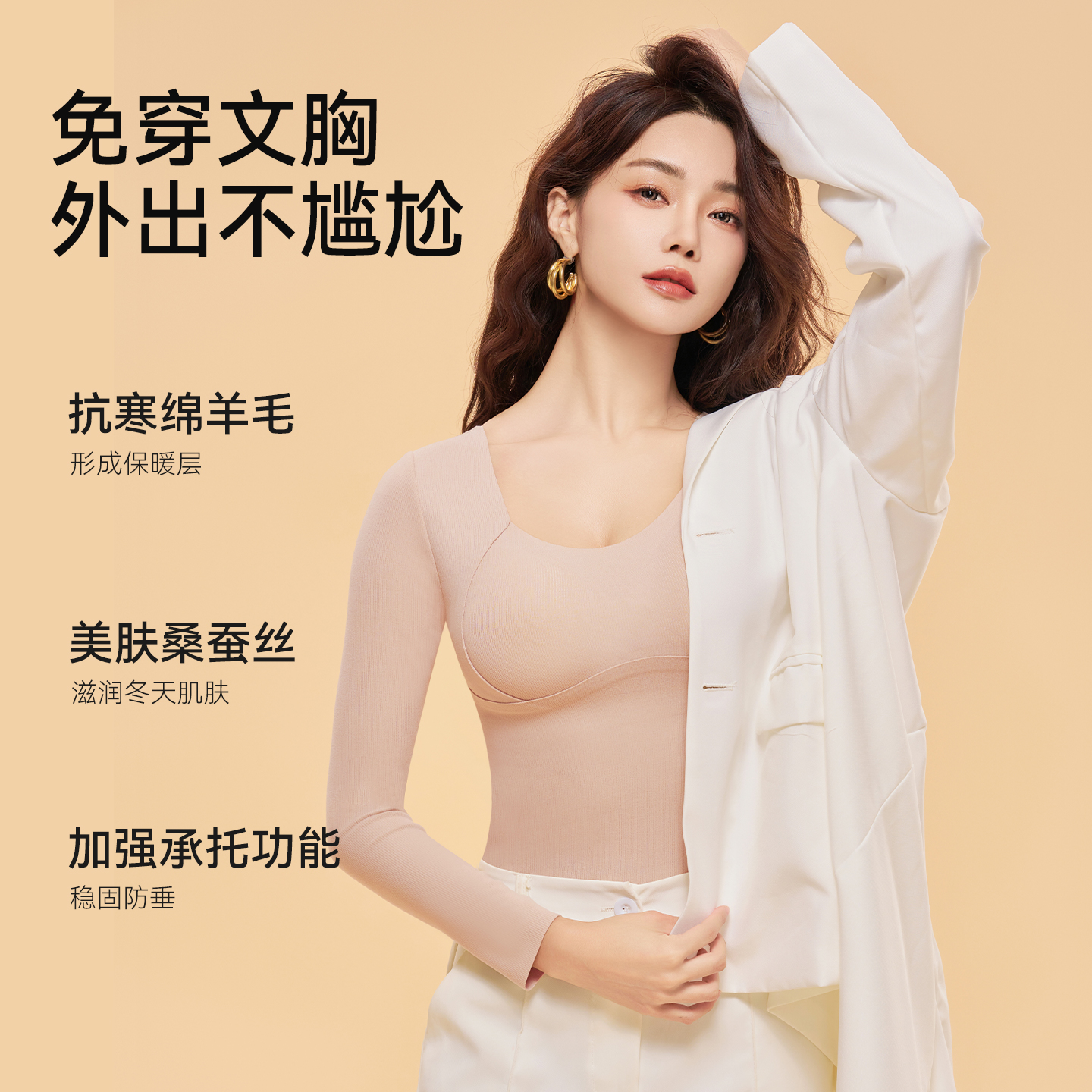 草本初色保暖上衣内搭打底女士秋冬长袖 带胸垫可外穿肌底衣打底衫