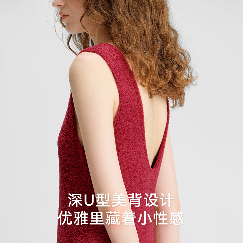 女秋冬季 sofu 美背长裙家居服睡衣套装 外套 休闲可外穿 半边绒开衫