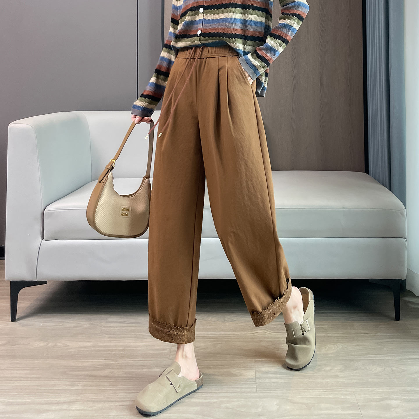 小个子抗皱钛金棉萝卜裤 休闲卷边花老爹裤 女秋款 蜜糖之城哈伦裤