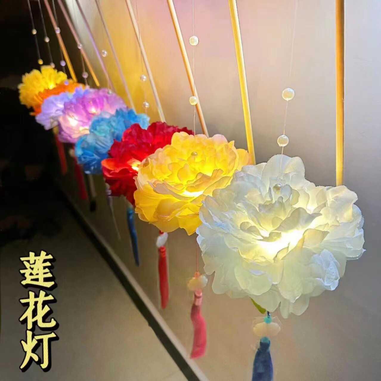 官方正品 莲花灯牡丹花手提发光灯笼成品兔子灯拍照古风汉服道具景