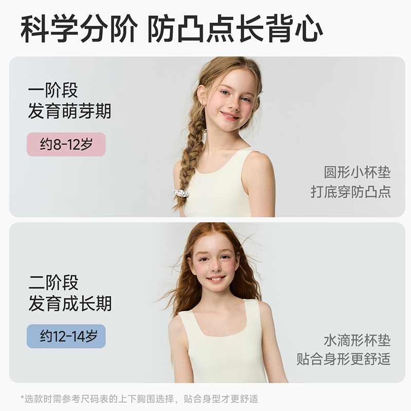 爱慕少女一二阶段发育内衣打底长背心护肚秋冬学生女孩带杯防凸点