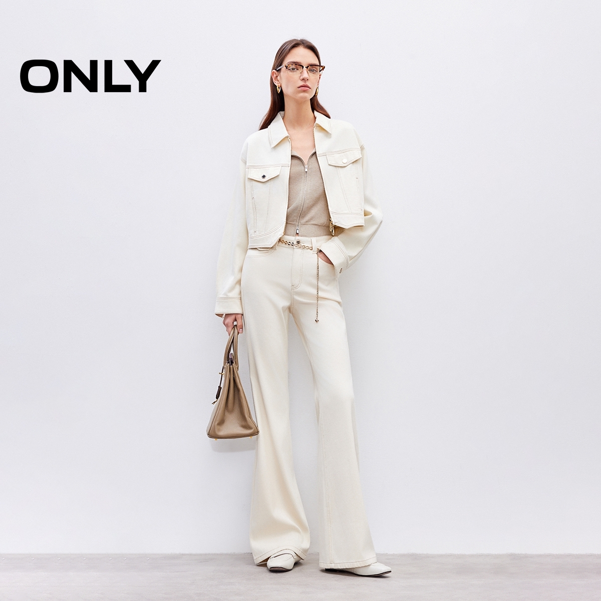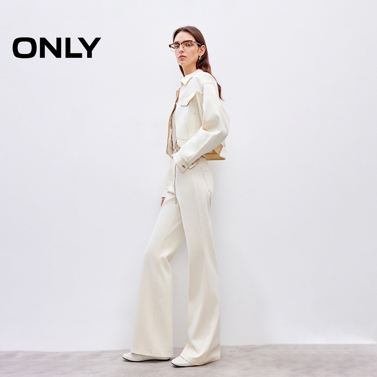 牛仔裤 加绒链条提臀约克线剪裁高腰喇叭裤 女 新款 ONLY2025冬季