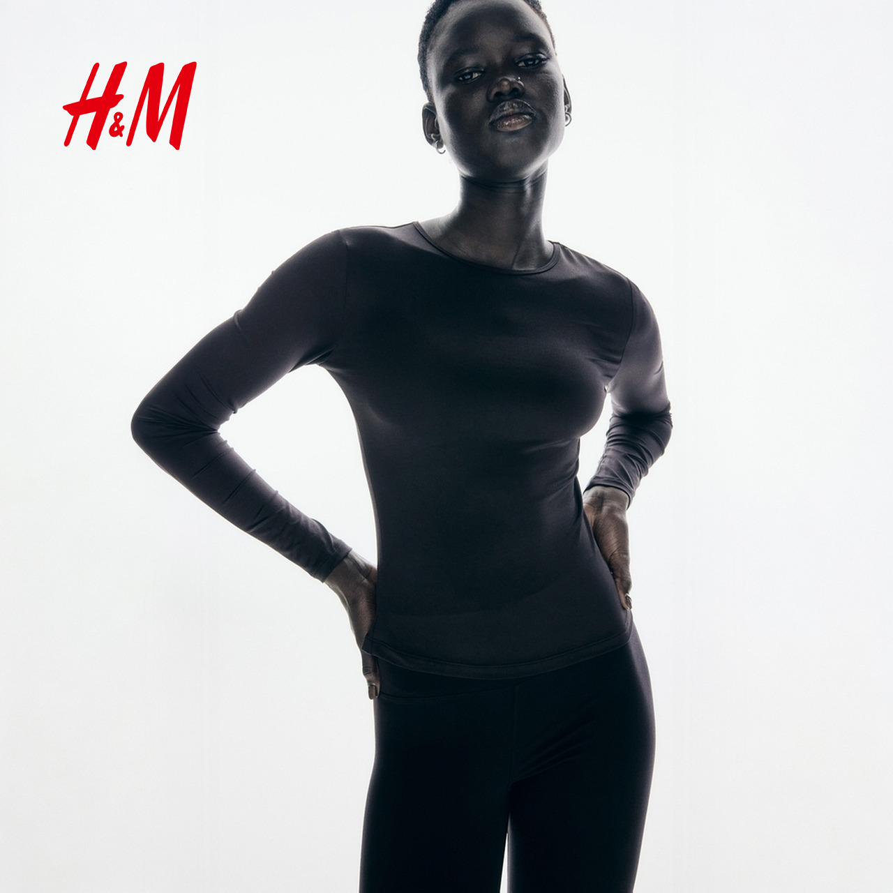 休闲长袖 HM女装 圆领柔软汗布内搭修身 新款 上衣1285401 T恤2025秋季