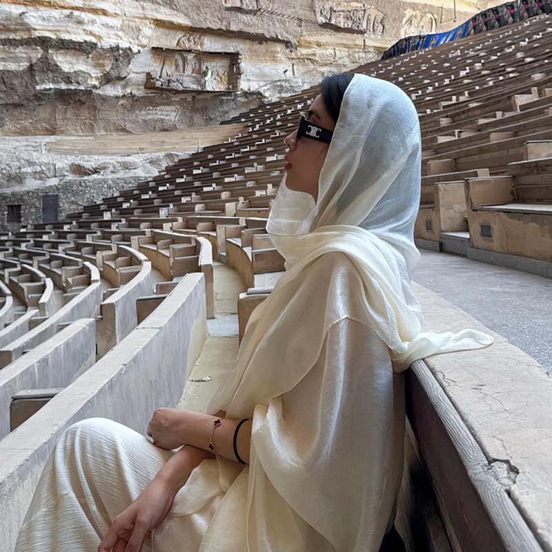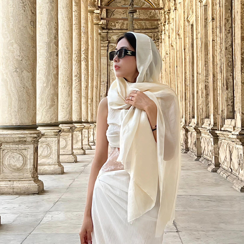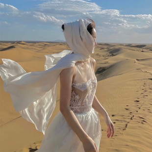 沙漠旅游纯色披肩女外搭薄款 丝巾人鱼姬色珠光纱巾空调房头巾围巾