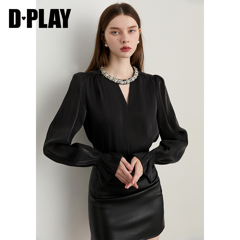 黑色衬衫 DPLAY 新款 2025年秋季 女宽松鎏光纱上衣 轻奢闪钻系列