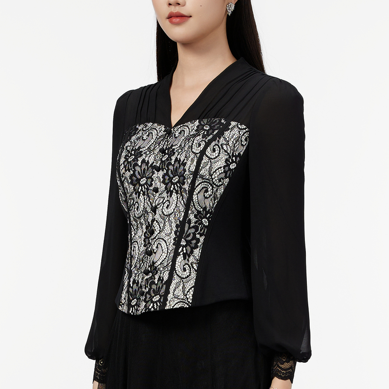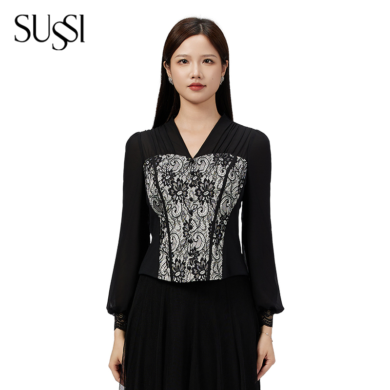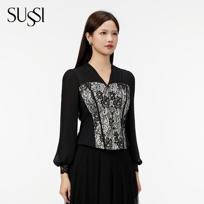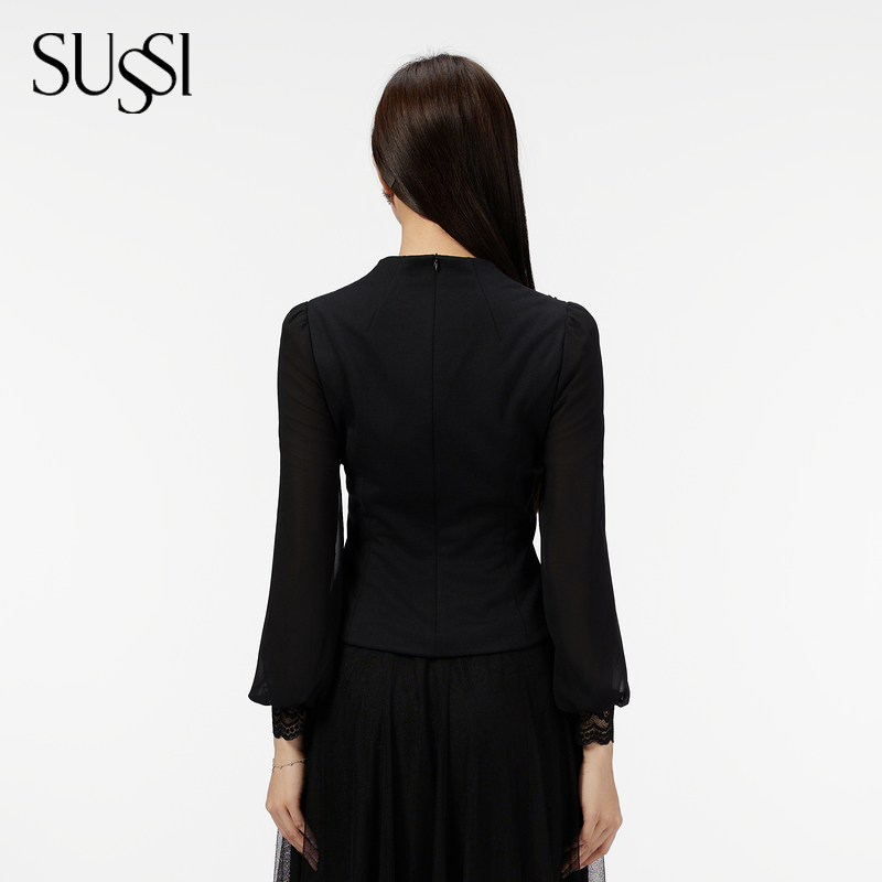 收腰上衣新中式 V领灯笼长袖 国风 古色25秋商场同款 SUSSI