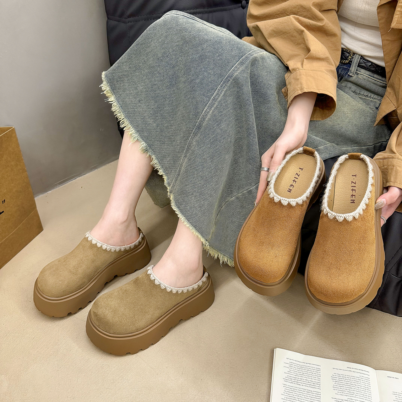 包头半拖鞋 34码 女外穿2025新款 一脚蹬博肯单鞋 秋季 厚底增高勃肯鞋