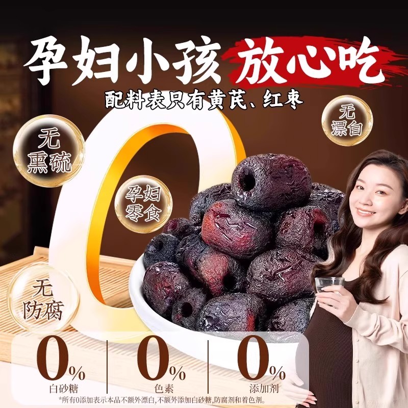 农科院三蒸三晒红枣黄芪蒸枣旗舰店新疆特产元 气去皮去核健康零食